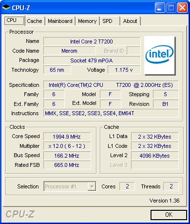 Core 2 duo T7200 cpu-z screen shot