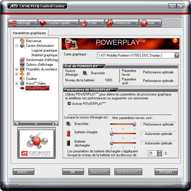 (luminosity screen, performances CPU, etc.) according to the