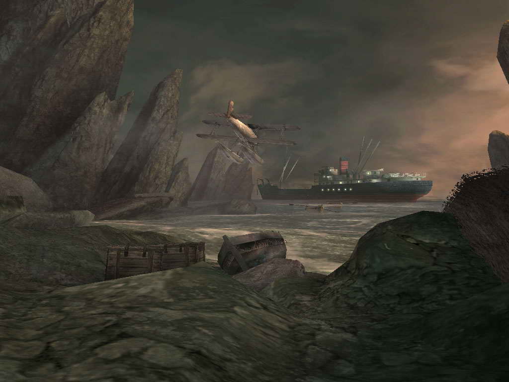The story in this game is relatively close -- though by no means identical in all respects -- to that in the movie, which itself is relatively faithful to the original 1933 film classic. Filmmaker Carl Denham (played by the spunky Jack Black) is desperate to make a great film, and so drags a motley crew, including the attractive Amm Darrow (played by Naomi Watts) on a wild goose chase. You play the role of screenwriter Jack Driscoll, (played by the Oscar-award winning actor Adrien Brody). The action begins right as their ship reaches the mysterious SkullIsland, a legendary locale filled with monsters of all varieties. You mission appears to be from the outset largely focused on figuring out how to survive.