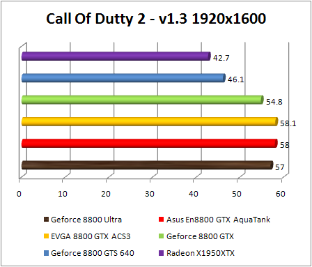 This game was always favorable to NVIDIA cards , those being largely at the head. The GeForce 8800 Ultra is more than 2 time faster than ATI Radeon X1950 XTX in 2560x1600. We note here that the overclocked GeForce 8800 GTX are very close and display similar performances to the GeForce 8800 Ultra. The GeForce 8800 GTX (reference ) is slower here by 10% than the ultra version.