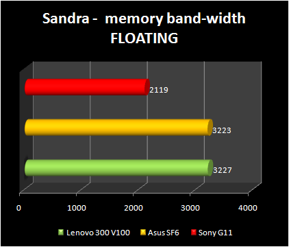 Finally some respectable score for all notebook ;-) Lenovo and Asus notebook has similar value . They have similar DDR2 with 667 MHz whereas Sony G11 was satisfied with 533 MHz frequency , which logically penalize its performances.