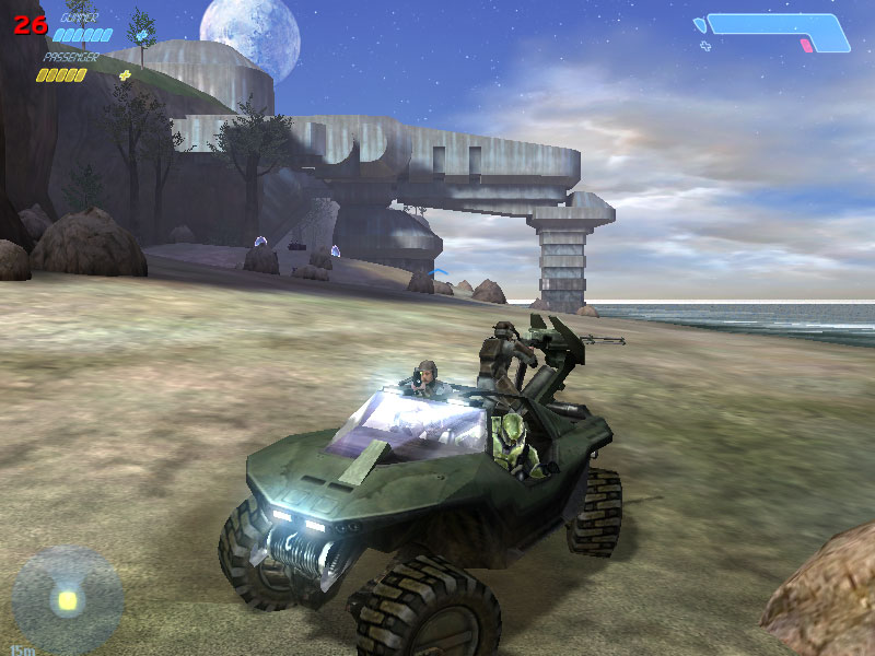 While the Chief’s health is as fragile as a regular human’s, he benefits from a protective shield that can regenerate itself after several seconds if not under fire. If players get hit with their shields depleted, however, they lose their health quickly. As a result, Halo’s gameplay is more strategic than careless – new players soon learn to duck, shield themselves with obstacles, and make the best use of the weapons at their disposal.