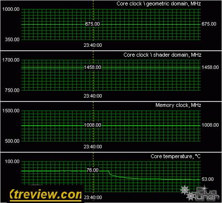 The replacement of cooling system by Accelero S1 did not influence the overclock results , but the new cooler was able to decrease a little the temperature conditions :