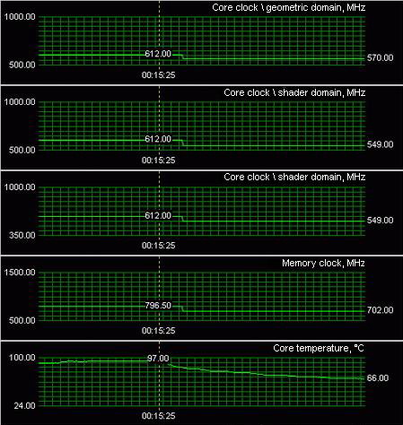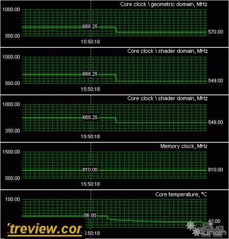 If we count that default frequencies in GeForce 7950 GT are (550/1400 MHz), then we have a quite good result, (+ 21.5% on GPU and 15.7% for the memory).