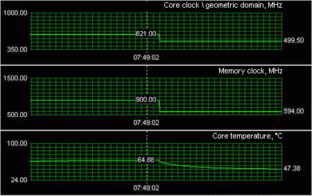 The Overclocking potential of this video card proved to be modest: he graphic processor was possible to reach only 621 MHz, while the video memory was limited to 1498 MHz: