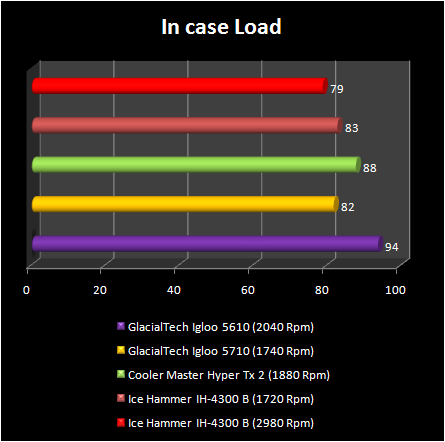 The cooler glacialTech igloo 5610 Silent is very weak for cooling properly the overclocked four core processor. 94 degrees in peak is a lot . On open case igloo 5610 Silent cooled the processor by 6 degree Celsius better .
