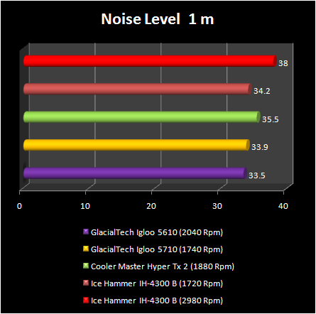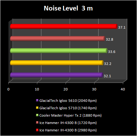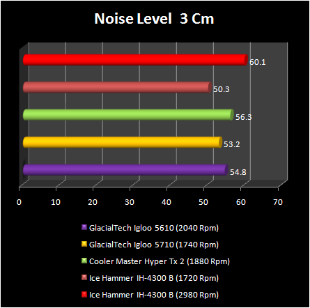 GlacialTech relate to the quiet cooler category this explain the obtained result , all cooler has about the same noise level.