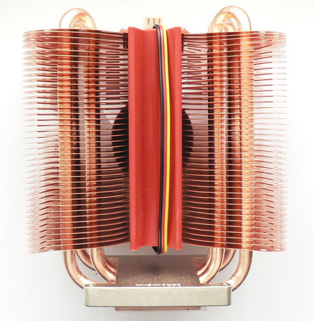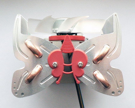 This cooler is very beautiful and the radiator form has the same construction as above, it differ only in terms of smaller quantity of copper cooling fins (32 pieces) instead of (42):