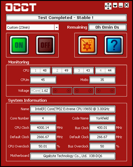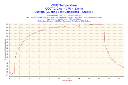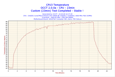We used OCCT (OverClock checking tool) version 1.1.1b in peak load mode , with 23- minute testing period :