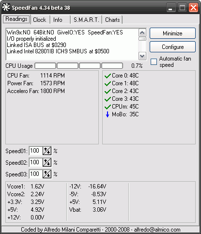 All tests were under Windows XP professional edition SP2. For temperature monitoring we used the utility SpeedFan.