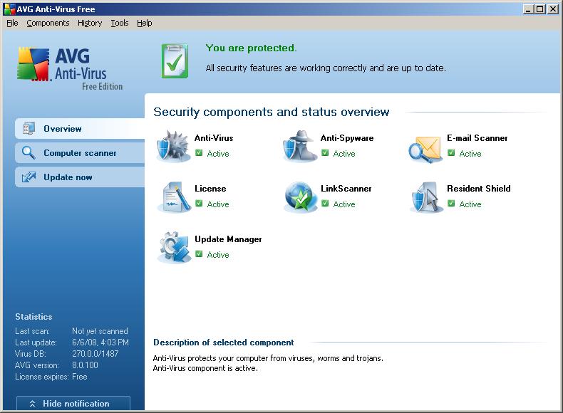 AVG Anti-Virus 8.0 Free is up and running immediately from the moment of installation. All basic settings have been pre-set by the manufacturer, so most of the time you will not have to worry about anything just let AVG work in the background and protect you without any effort on your part. However, there might be situations where you need to adjust the program settings, or decide what to do