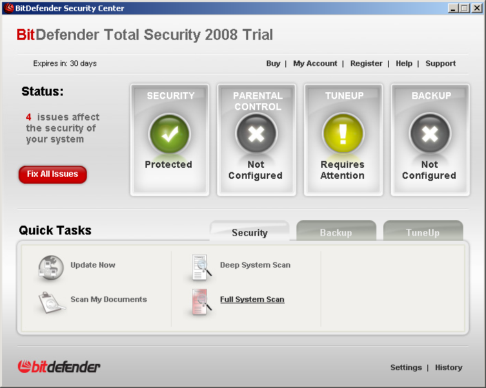 BitDefender Total Security 2008 is the last version available currently and provides comprehensive proactive protection against viruses, spyware, hackers, spam and other Internet security threats, along with system maintenance and data backup.