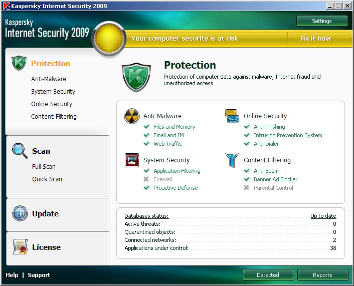 Kaspersky Internet Security 2009 is a totally new approach to data security. The main feature of the application is restricting the programs\' rights to access the system resources. It helps prevent unwanted actions by suspicious and hazardous programs. The application\'s capabilities in the protection of user\'s confidential data have been considerably enhanced. The application now includes wizards and tools which substantially facilitate execution of specific computer protection tasks.
