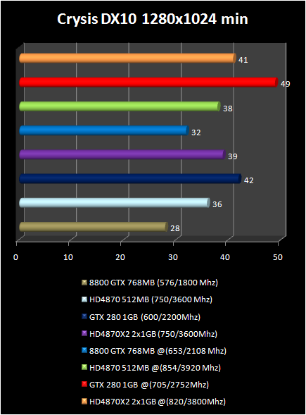 It is necessary also to speak also about the comfort degree in games using Radeon HD 4870 X2 2X1 GB. In many test we can see that minmium frame rate of this card is usually slower than the GeForce GTX 280 .