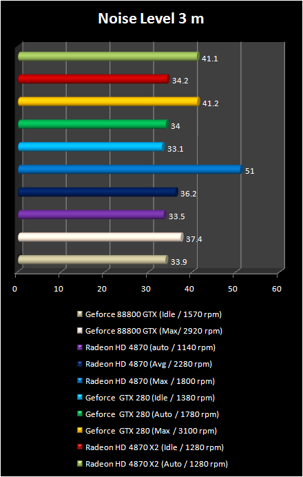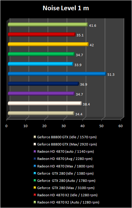 Note the fan speed during the test did not exceed ~1800 rp/min (using rivaTuner 2.10 the fan speed value for GTX 260/280 must be multiplied by two), conseqonsly the noise level proved to be sufficiently low . But if we boost the fan speed to the maximum, then noise becomes more explicit, but the graphic processor and the video card temperatures as a whole are substantially reduced: