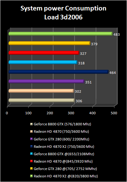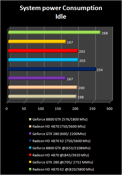 The level of energy consumption from the overclocked Radeon HD 4870 X2 impresses , approximately 100 watts more that the GeForce GTX 280 and up to 260 watts higher than the radeon HD 4870 system . However, quality power unit with 550 watts, for this configuration is completely sufficient.