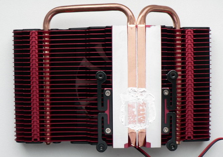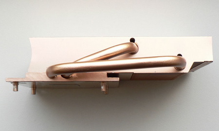 The reference cooling system for the radeon HD 4850 is the weakest part of this video card. It is completely logical, after increasing the frequencies, HIS decided to install to its video card a alternative cooler . Two copper heat pipes with 6 mm diameter: