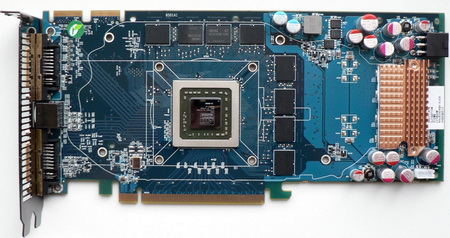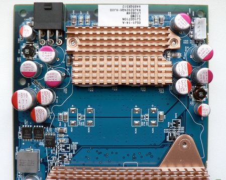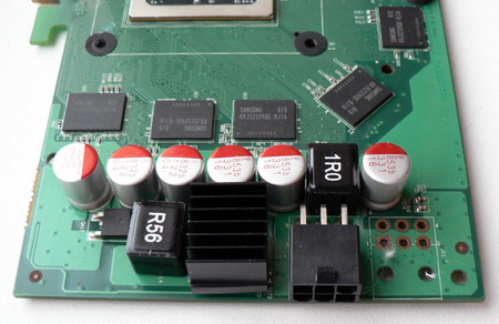 In the upper video card part are located two port for CrossFire regime or immediately four in the CrossFireX regime . The power part is made by four-phase power-supply ( usual 4850 adapts three-phase system) :