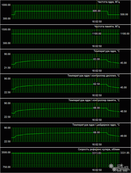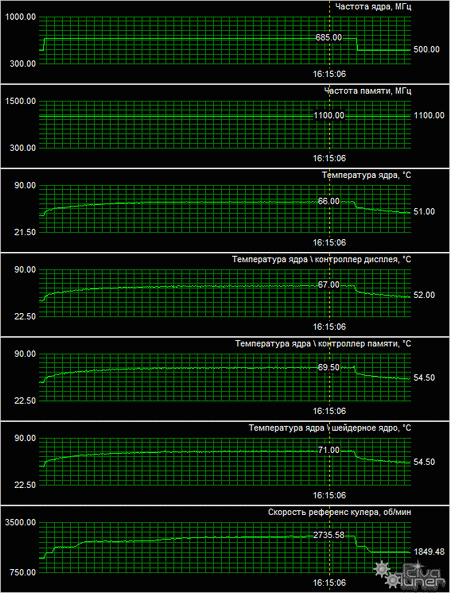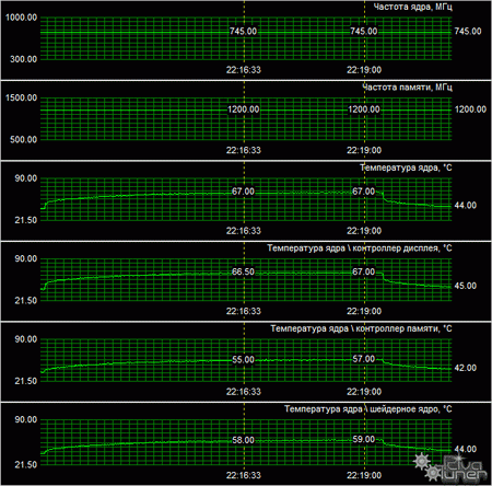 According to rivatuner , this cooling system works very effectively, since the temperature of the overclocked GPU did not exceed 66 degree :