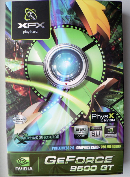 But here according to core area and overclocking potential, before us the 55- NM chip. This graphic processor include 32 stream processors, 16 textural blocks and 8 blocks ROP\'s. The specifications Of the GeForce 9500 GT are 550/1375 MHz ; however, XFX company increased the frequencies of its XXX alpha dog version to 680/1600 MHz or + 23.6% and + 16.4% .