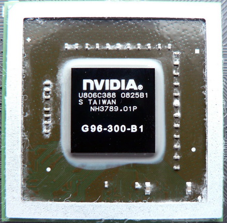 The G96 small graphic processor area composes only 144 sq. mm, the number of transistors is 314 mln. The chip marking G96-300-B1 speak, that it is released in Taiwan on the 65- NM technology :