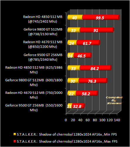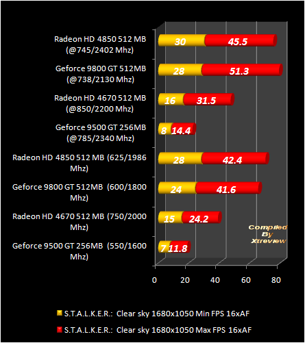 It is interesting that the GeForce 9800 GT in the popular today game S.T.A.L.K.E.R.: Clear sky is faster than the Radeon HD 4850.