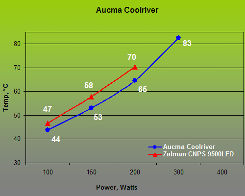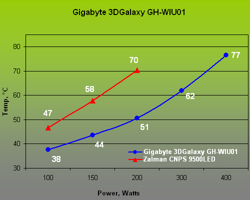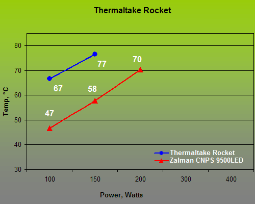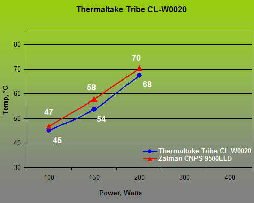 The protection threshold is set up from the keyboard and is written into the tool’s memory. We set it at 85°C for our tests: contemporary microprocessors (other than military or special-purpose ones) cannot be stable under so high a temperature. However perfect a testbed may be, the results will be different on it than with actual processors. That’s why we took one of the latest and most expensive (at $65) air coolers, Zalman CNPS 9500LED, and used its results as a reference point. The cooler is equipped