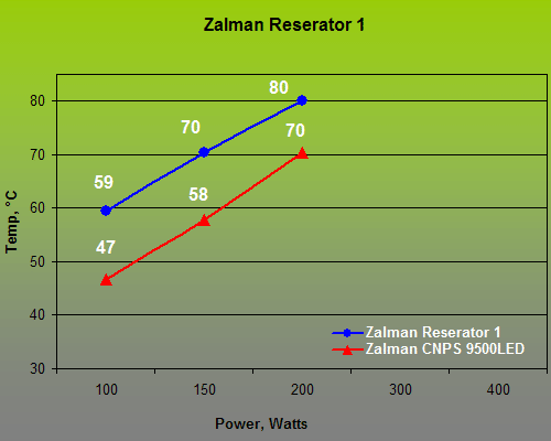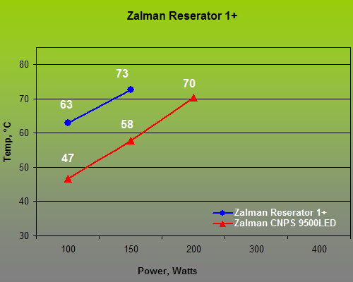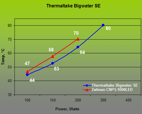 Zalman’s system did a lot better in our tests than its analog from Thermaltake. The reasons are the larger area and intricate surface of the radiator.