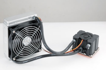The heat-absorbing element of a water-cooling system is typically very small. The water heats up in it and is then driven into the radiator which can be placed anywhere, either inside or outside the case. You can even hang it out of the window if you wish. The size of the radiator is virtually unlimited, and it can be made larger to cool the water more effectively. Some systems to be reviewed here come with impressively large radiators and lack any fans altogether. They are usually referred to as passive,