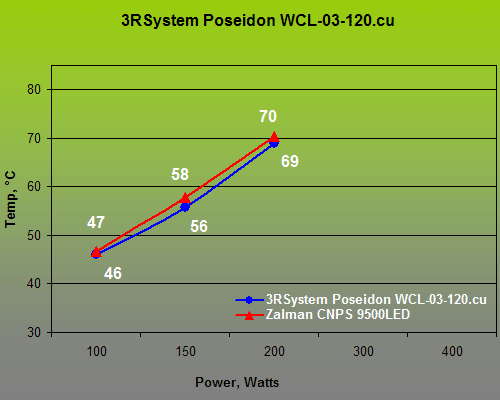 We only tested the CPU water-block on our testbed and were very surprised at the performance of the Poseidon WCL-02. The good old Poseidon is still hale enough to equal our reference air cooler Zalman CNPS-9500LED!