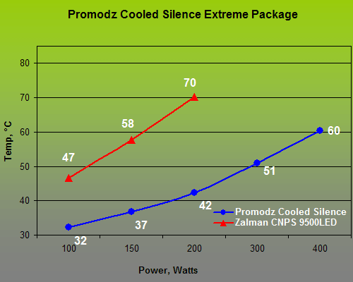 Of course we expected the system to deliver a high performance, yet the results were so high as to be shocking! The ProModz Cooled Silence Extreme Package beats every other system included in this review. The heater’s temperature had never been so low on our testbed! As for the noise factor, we used the fans from the Asetek WaterChill kit and the noise was low enough. The only thing missing in this system is a fan speed controller. You don’t need that much of performance always, while lowering the fan speed