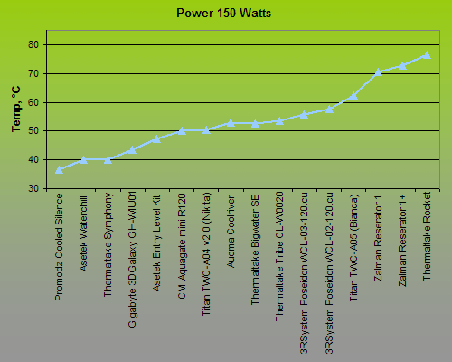 The performance of each water-cooling kit was compared against the performance of this cooler. The cooler’s performance graph is added into the performance graph of each tested kit.