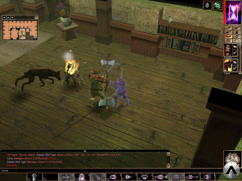 Nights plays out from a third-person perspective that highly resembles Dungeon Siege. You begin in your bedroom at the Academy, and are greeted by another student. The entire beginning process at the Academy is designed as a tutorial session to familiarize you with the sometimes complicated Neverwinter interface. As you move from room to room, trainers give you crash courses in things such as your journal, inventory, and combat systems. After the basic combat tests are complete, you are sent off to