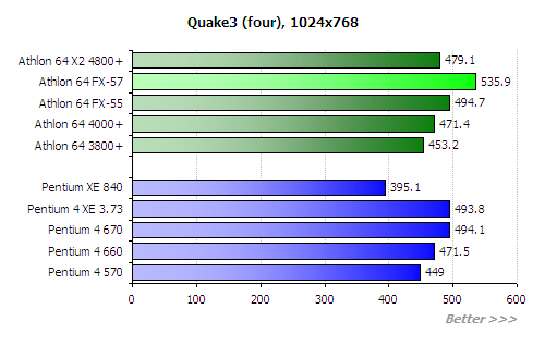 in fact had long given up competing with AMD in this market sector. Having reached 3.8GHz frequency, Pentium 4 series processors went another way of development: this series has only been adding new features and increasing the L2 cache size in the last year and a half. Due to this reason as well as some architectural peculiarities, modern processors of the NetBurst architecture have long been unable to challenge the performance of the Athlon 64 in games.