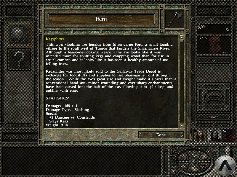 Black Isle addressed nearly every criticism players have leveled on the franchise, and even looked toward other genres to improve IWD2. For instance, as in Diablo 2, holding down the "Alt" key now highlights all doors, revealed secrets and treasure - even if something is literally hidden in the crevices of a couch. Players can now examine their maps without pausing the game, and buy and sell the contents of their containers without having to first shift the items to their backpack. What\'s more, being "energy drained" by a foe no longer forces the player to reselect all of his or her spells.