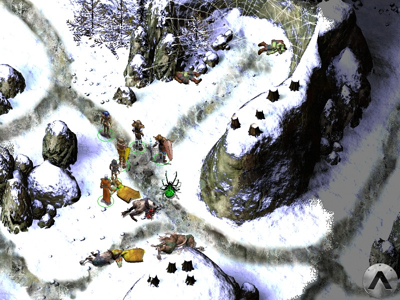 Make no mistake, set piece battles are still the mainstay of the game, and are more dynamic and engaging than ever. Combining strategy, tactics and even logistics (trips back to town for supplies are quite rare), IWD2 makes the most of the 3rd Edition core rules and allows players to take them on their own terms, whether they approach the title as a real-time click-fest, take a managerial role by using included or custom artificial intelligence scripts on their characters, or even set it to auto-pause after every action in combat in order to create a turn-based experience. Graphics: People who assume that the latest offering to take advantage of BioWare\'s Infinity Engine would logically be the most technologically advanced will likely spend a lot of time searching for the "enable 3D acceleration" button, because there isn\'t one - even though the first Icewind Dale included the feature. One resulting visual deficiency brought by the omission of 3D support is a dithered and pixel-laden "fog of war," rather than a smooth gradient over unexplored territories. Although higher resolutions are available, the maximum supported resolution is 800x600, which is functional enough without making the game appear too grainy or distancing the player too far from the action.