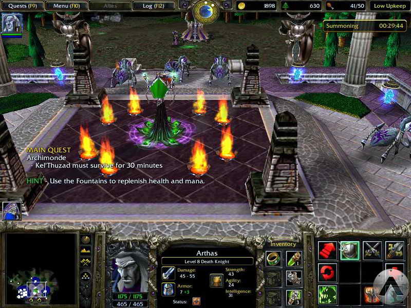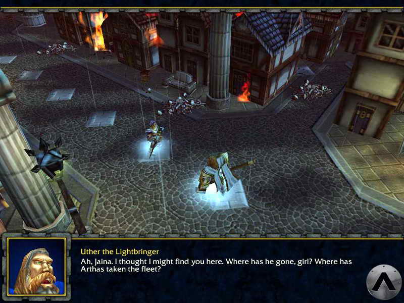 Arthas and the other heroes featured in Reign of Chaos are given a complexity and depth new to the real-time strategy series. They are, in fact, the focal point around which much of the game revolves. With their introduction, WarCraft III borrows a page from Diablo II\'s tome, incorporating a few light, yet highly influential, role-playing elements. These heroes can cast spells on friendly and unfriendly targets, brandish auras that affect units within a measured radius and even gain levels that yield experience points, which in turn lead to the learning of new and more powerful abilities. Arthas, for example, can earn Holy Light, an incantation that heals a targeted Alliance unit or scourges an undead foe. The lich Kel\'Thuzad can encase his undead brethren in a protective Frost Armor shield or unleash Death and Decay on a selected area, wounding all unfriendly units and damaging all enemy buildings in its blast radius.