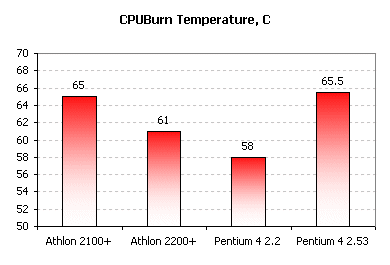 Once facing these facts, the unsophisticated reader would instantly infer that the Athlon XP\'s temperature is too high, even dangerous for the CPU. But the facts need a few comments making clear the point of the matter. On the whole, the comparison to Pentium 4 is not correct as the operation mechanisms, thermal conditions and monitoring of the Intel\'s processor differ greatly from the functions implemented in Athlon XP.